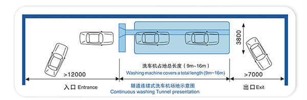 1.方便車輛進出。入口盡量留有不少于三輛車的等待空間,這樣可以保 持洗車機的連續性。