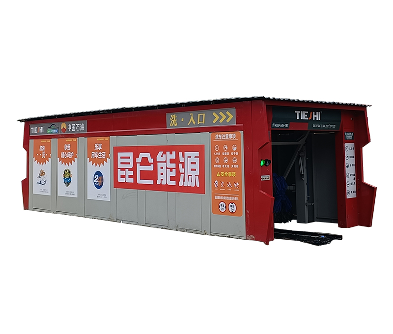 凱沃隧道連續式電腦洗車機主要用于轎車、越野車、小型面包車、箱式等車輛的外表進行高壓水沖洗、清洗劑洗、刷洗、蠟洗、風干和拋光作業。當車輛被輸送機送入洗車房后,首先由擺動式高壓水刀完全沖掉附于車體上的微小砂礫及灰塵;再經噴淋發泡清洗液和多組洗車機專用刷滾對車輛表面及輪轂作多角度包裹清洗;經高壓風干后,再由三組特柔拋光刷作擦拭,使汽車表面更加光亮如新。