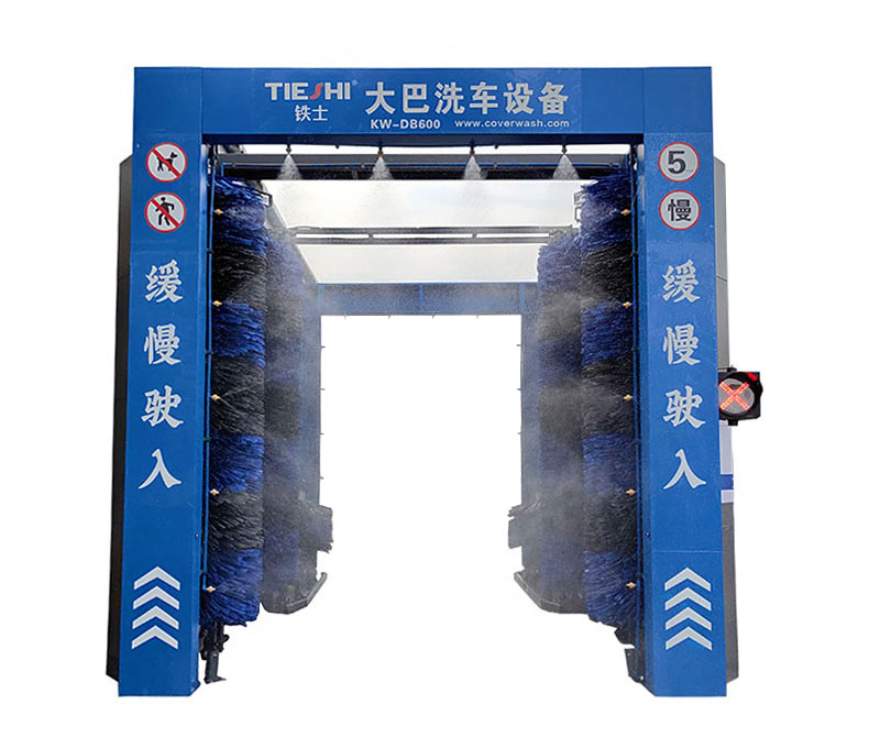鐵士KW---400D型大型通道式電腦洗車機專門為清洗中巴車、大客車、集裝箱而設計,采用通道式洗車方式,車輛由駕駛員自行慢速駛入機器清洗。四組毛刷分別清洗車輛的前后面和兩側面。清洗時由駕駛員配合操控。巴士快速洗車機可進行連續快速洗車,每小時高可達20輛,自動化程度高、洗車數量大、占地面積小;廣泛應用于各大公交系統,停車站場,以平均每小時20輛的清洗速度作業,常見的情況為兩臺或三臺并聯式安裝,可滿足停車量為1000左右的大型停車場的需求。